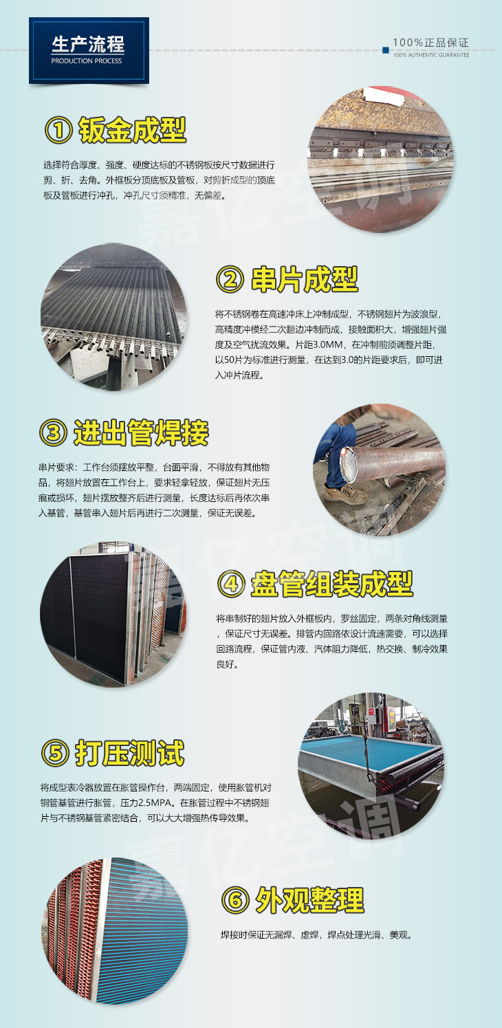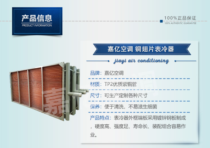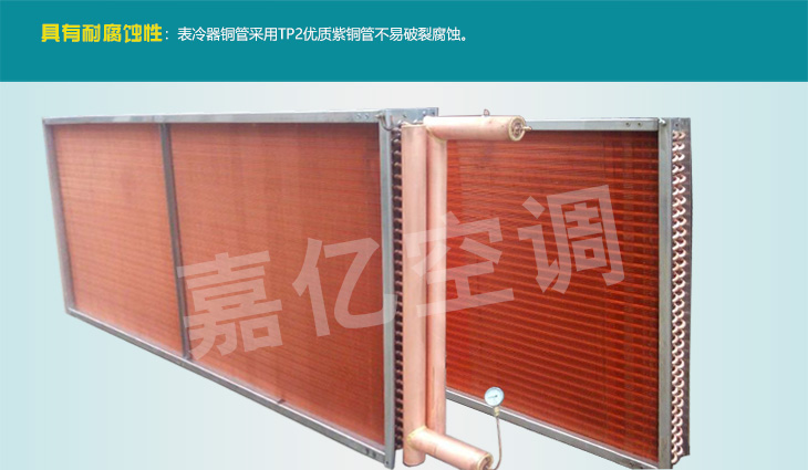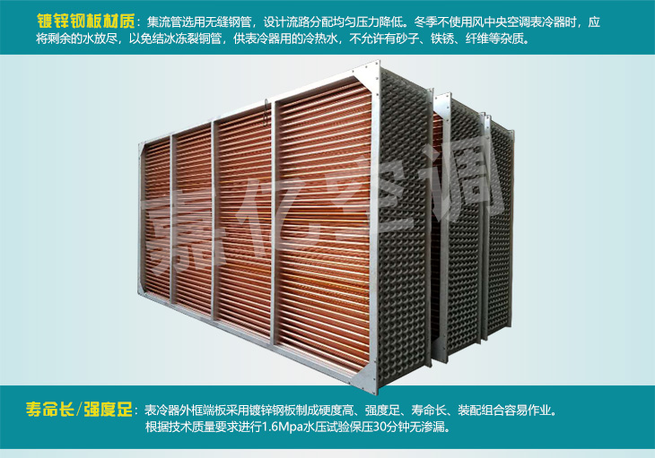 1: 表冷器匯管材料可以是鍍鋅鋼管,也可以是銅管或是不銹鋼管,表冷器翅片可以是普通鋁箔,也可是親水鋁箔;表冷器端護板可以是鍍鋅板也可以是不銹鋼板。