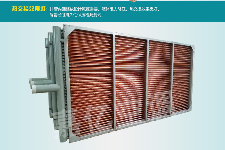 TL型高效換熱系銅管穿鋁片式換熱器,它 采用了先進的機械漲管和圓弧波紋雙翻邊鋁肋 片結(jié)構(gòu)型式。機械漲管使銅管與鋁肋片接觸緊 密,圓弧波紋能促進流體率流,破壞邊界層,提出傳熱系數(shù)。先進的結(jié)構(gòu)型式、再加上水路 行程,管距,片距設(shè)計合理,使得該換熱器具 有傳熱性能好,空氣阻力小,結(jié)構(gòu)緊湊,重量 輕等特點。它可廣泛應(yīng)用于空調(diào),冷卻、去濕、采暖等工程中,是新風(fēng)機組和空氣處理機組理想的配套產(chǎn)品,它又可與風(fēng)管連接作為冷若冰霜卻或加熱單獨使用。銅管焊接采用低溫快速釬焊,確保耐壓>1.2Mpa。
