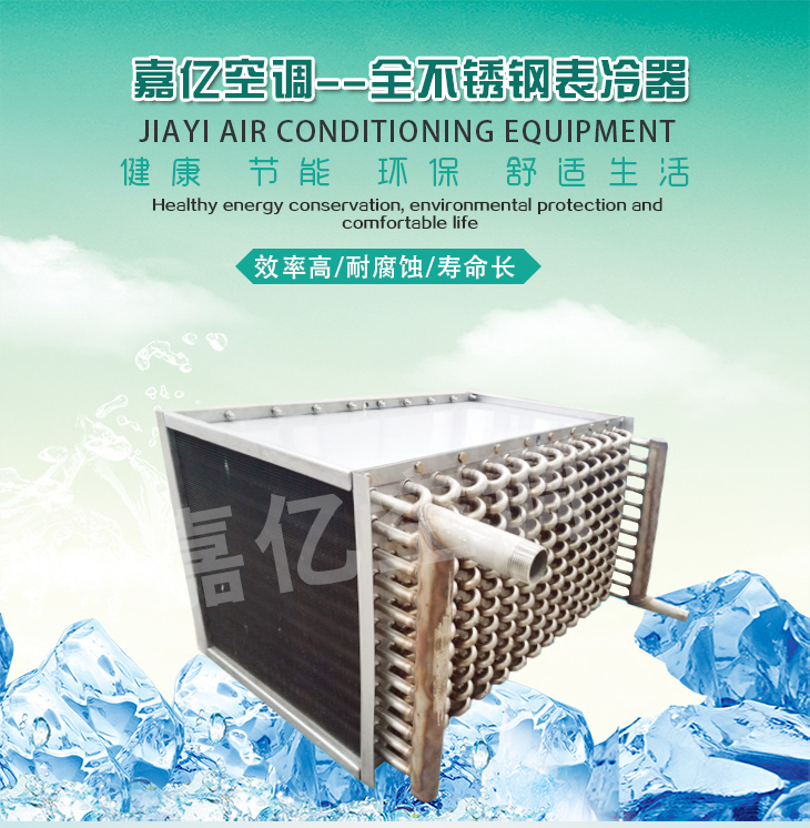 1: 表冷器匯管材料可以是鍍鋅鋼管,也可以是銅管或是不銹鋼管,表冷器翅片可以是普通鋁箔,也可是親水鋁箔;表冷器端護(hù)板可以是鍍鋅板也可以是不銹鋼板。