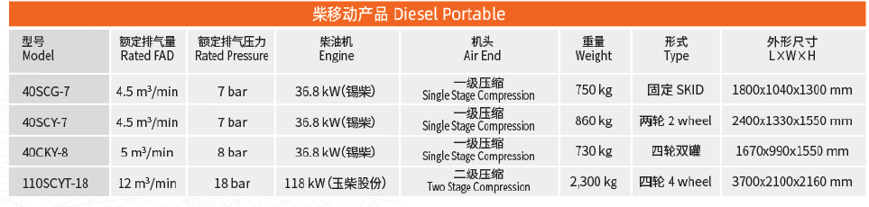 輕型移動式螺桿空氣壓縮機-柴移動產(chǎn)品系列